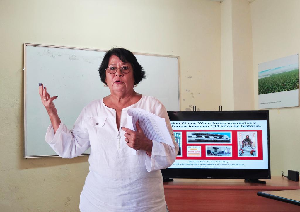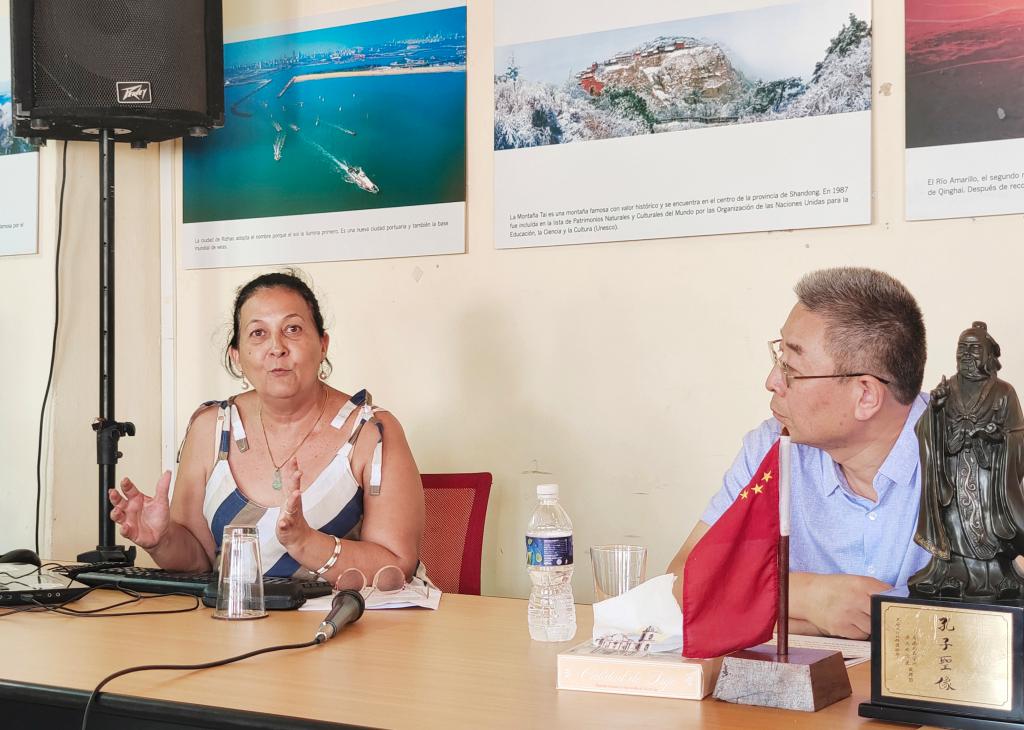 哈瓦那大学亚洲史教授、中古友好协会副主席玛丽亚·特雷莎博士(Maria Teresa Monte de Oca Choy)结合自己家族的迁徙流转、华人团体的颠沛流离,为我们描绘了古巴华人华侨的朴素群像;在古巴重大历史变革中,华人团体依托中华总会馆为古巴发展所做的努力,分析了中华总会馆及华人华侨团体日后发展的重点。