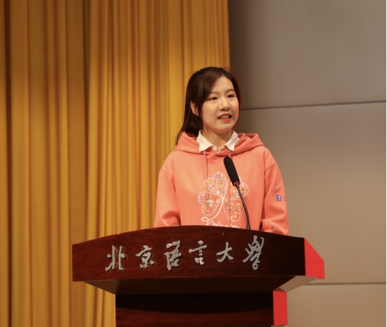 来自中国科学院大学的方沁代表培训学员发言,她讲述了自己对国际中文教育事业的热爱和在北语培训的心路历程,并表示赴任后会以更高标准约束自己,努力为国际中文教育事业贡献力量。