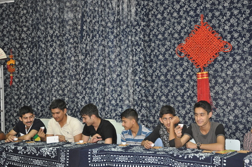 17名巴基斯坦学员8月4日晚上抵达北京,正式开启了他们的中国之行。Faheem和伙伴们被安排到了北京语言大学的留学生公寓。学员们平时的主要活动是上课和语言实践。上课包括汉语课和中华才艺课。汉语课会针对性的教学生一些特定场景使用的词和句子,如商场购物、饭馆儿点餐等,以便他们在语言实践活动中能活学活用。学员们印象最深的是上午汉语课刚教了购物和讨价还价的汉语表达,下午就奔赴秀水街就可以用不太标准的汉语跟精明的店主讲价:“太贵了,便宜一点儿!”