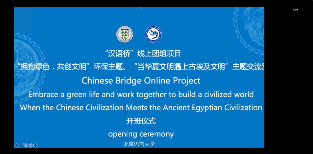 此次线上冬令营分为两大主题:“当华夏文明遇上古埃及文明”非遗主题立足传统,学员在线学习汉语的同时进一步了解中埃两国非物质文化遗产,师生共同探讨作为中埃两个文明古国传承人应有的责任和担当;“拥抱绿色,共创文明”环保主题立足现代,向学员传递应对当下全球环境问题的人类命运共同体意识。
