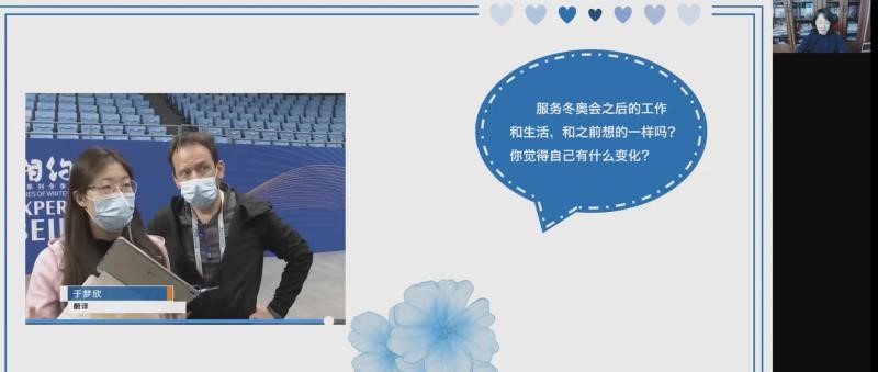 在“对话奥运会志愿者·奥运因你而精彩”中,同学们与北语志愿者于梦欣一起搭建中外交流桥,与冬奥会安保员李红继一起站好冬奥服务岗,与制冰师傅刘博强一起圆梦冬奥,与三亿平凡大众一起点燃不平凡的冰雪激情。
