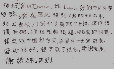 本次“魅力东北,冰雪奇缘”委内瑞拉学生汉语桥线上团组是在2020年“我和我的故乡-中国乡村行”“云乘高铁,畅游中国”两个汉语桥线上团组顺利举办的基础上,北京语言大学针对委内瑞拉玻利瓦尔大学孔子学院设计的又一当代中国主题汉语桥线上团组交流营。在此前的结营仪式上,各班学员代表纷纷发言,表达了对北京语言大学举办这次活动的感谢,并分享了在这次交流营中的学习收获。