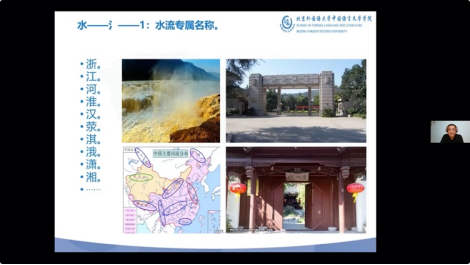 孟老师从汉字“冰雪”出发,又为大家讲解了与“水”有关的汉字知识。孟老师讲到:地下之水为泉水(亦称为有源水),天上之水为雨水(亦称为无根水),汇流之水为江河(亦称为东流水);水凝则为冰(仌),水常则为水(氺),水蒸则为汽(气)。自然界中的“水”在中国古代先民中占有重要的地位,最早的时候,“江”特指长江,“河”特指黄河,因为长江和黄河是中国最重要的两条河流,所以就逐渐成为了中国所有江河的代名词。