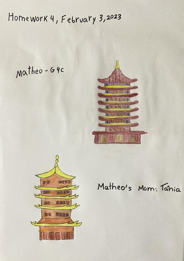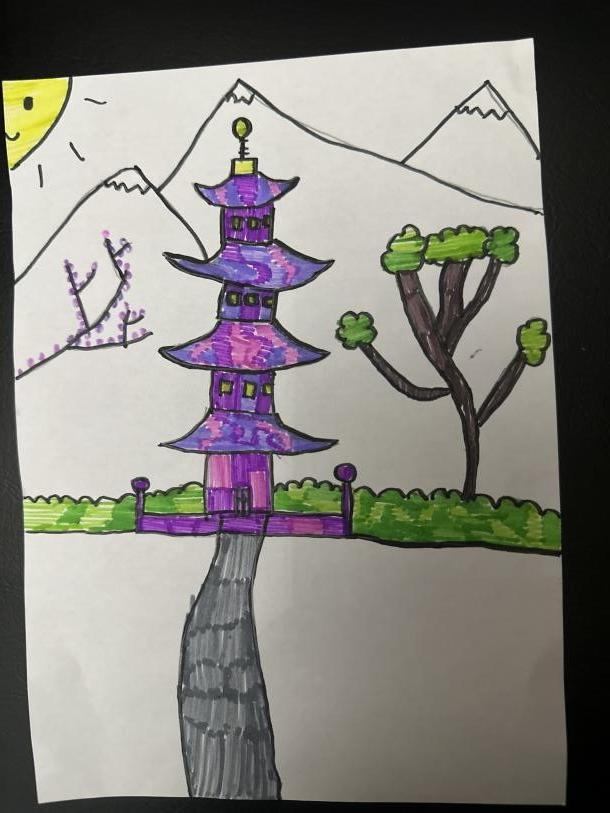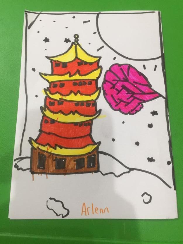 在“楚国八百年——湖北省博物馆”主题学习中,学员们了解湖北省博的文物古迹、“云登”了黄鹤楼,一起感受黄鹤楼“对江楼阁参天立,全楚山河缩地来”的宏伟气势,并画出了自己心目中的黄鹤楼,同时也分享了印尼的标志性建筑。