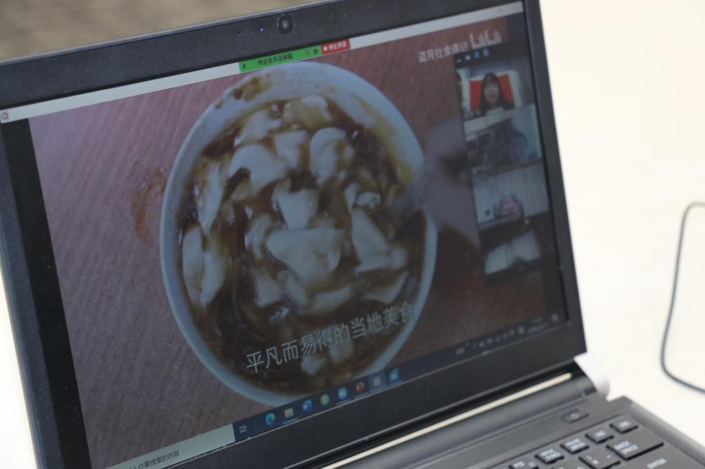 接着主讲老师带领大家一起“云探访”志愿者老师们的家乡,分别探寻了天津、河南和陕西的特色美食。天津是一座“中西合璧、中西交融”的城市,主讲老师通过视频,向大家展示了天津的建筑、民俗、曲艺以及饮食等文化,并引入了名扬四海的特色小吃——“天津三绝”。河南美食历史悠久,主讲老师以洛阳和开封为例,给大家介绍了河南的汤文化,各种各样的汤,制作考究,数目繁多,占据了河南人的大部分生活。而陕西西安,作为著名的历史名城,汇集了陕西各种各样的特色美食,可以说是“吃货们的天堂”。主讲老师通过美食博主的Vlog,带领大家一起领略西安美食的魅力,感受西安人的热情,引得大家捧腹大笑。
