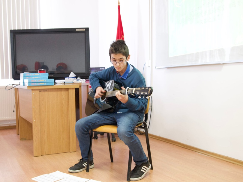 最后是才艺展示。扬库(Iancu Andra)身着绿色长裙,伴随着优美的音乐,翩翩起舞,整个舞蹈动作优雅,赏心悦目。白娜(Băltianu Ștefania-Alexandra)身着传统服饰,为大家表演了一段节奏欢快的罗马尼亚舞蹈,让人印象深刻。阿乐(Belei Alexandru)表演了吉他独奏《平凡之路》,教室里充满了欢乐的气氛。