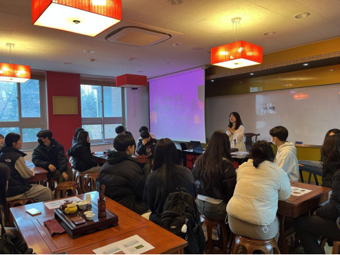 11月16日,来自庆尚南道昌宁郡大成高中(창녕대성고등학교)的19名高中生参加了由启明大学孔子学院举办的中华茶艺文化体验活动。同学们学习了中华茶艺中的“行茶十式”,亲自体验了泡茶的全过程,也感受到了中华茶艺中所蕴含的宁静与典雅。同学们纷纷表示,这是一次非常有趣的体验活动,通过这次活动,他们对中国文化有了更深入的了解,也希望有机会能再次来到孔子学院,学习汉语、感受更多中华文化的魅力。