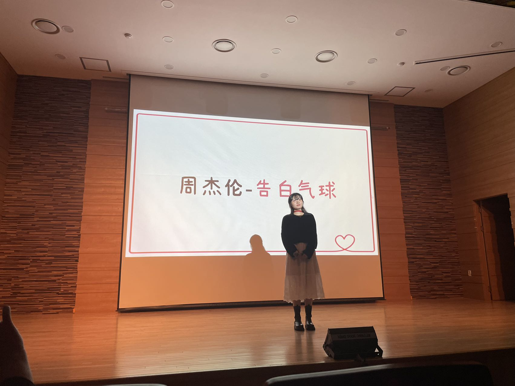 接下来,中文系一年级的两位演唱者为大家带来了《月亮代表我的心》《告白气球》《恋爱频率》等中韩两国耳熟能详的歌曲。两位同学青春洋溢的演唱使得活动气氛逐渐升温。