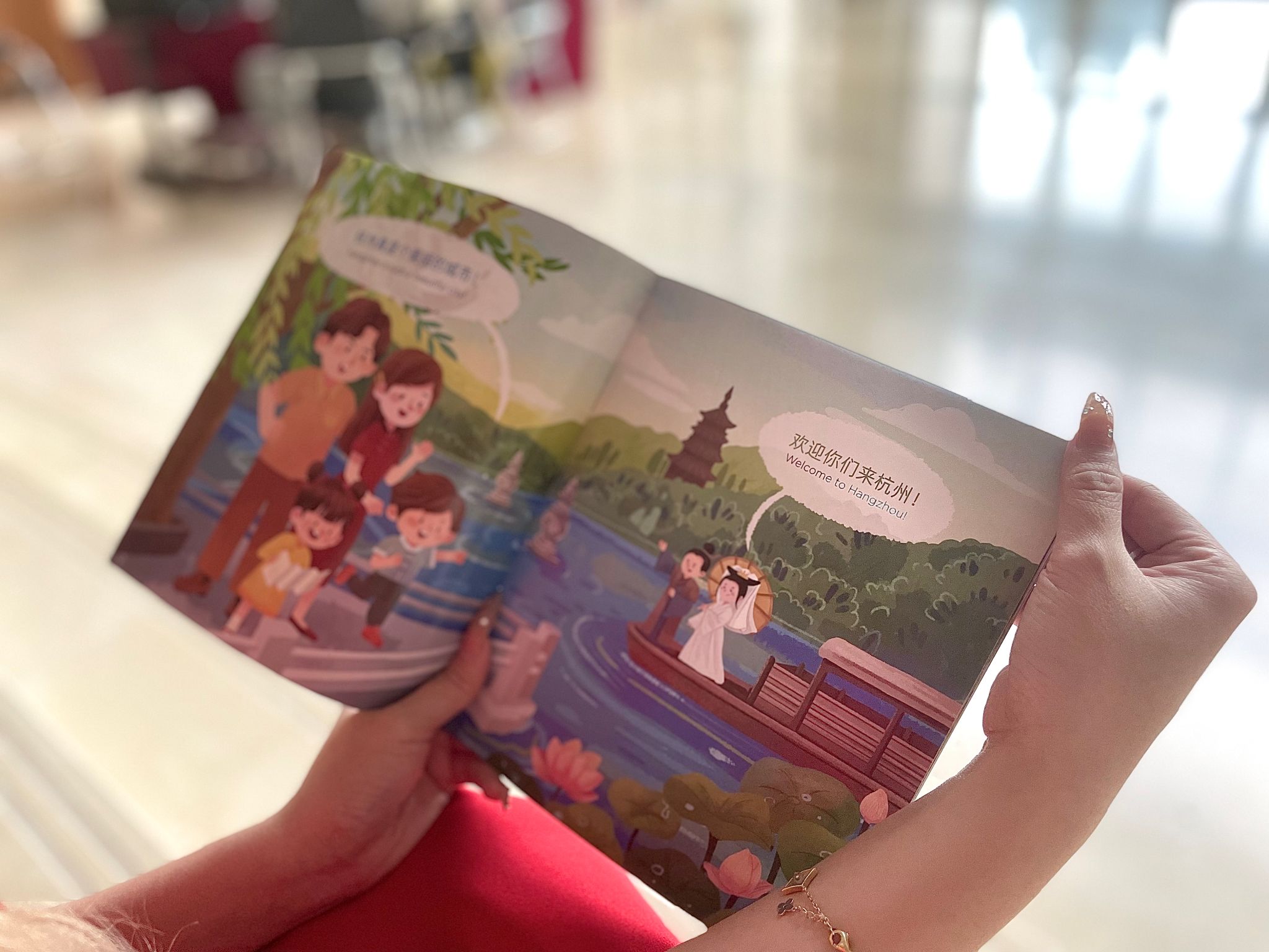 丛书描绘中国风貌,传递风土人情。本次发布的《杭州亚运会赛区城市主题绘本》以全手绘形式,通过中英文生动地宣传呈现了中国共同富裕示范区的城市风貌,分为杭州、金华、湖州、绍兴、宁波、温州共6册。该绘本为外国友人,特别是青少年儿童们了解中国城市,感受中国发展提供了便捷的渠道。