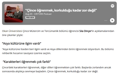 奥坎孔院学员接受CRITÜRK采访新闻截图