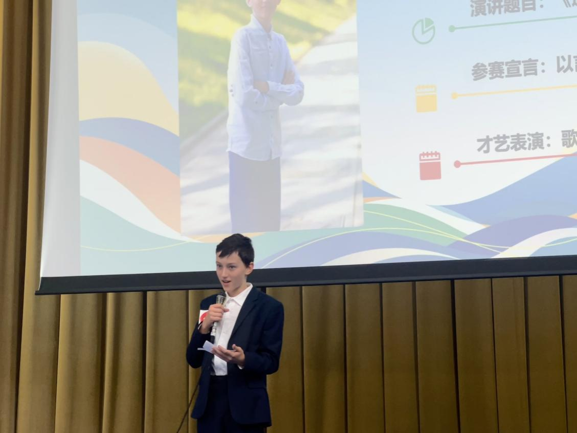 Negoitä David Andrei(中文名:宁逸泽)同学同样以《追梦中文,不负韶华》为题,讲述了他在学习中文过程中的成长与感悟。在才艺展示环节,他演唱了中文歌曲《北京欢迎你》,表达了对中华文化的热爱与憧憬,荣获三等奖。其指导教师为王皓滢老师。