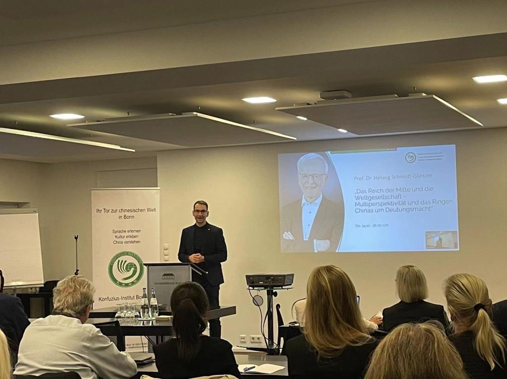 10月14日,由波恩孔子学院和波恩大学汉学系联合举办的“探究中国,同中国一起探究”主题系列讲座在波恩大学俱乐部成功拉开帷幕。此次讲座依旧采用线上线下同时进行的方式,波恩孔子学院德方执行院长叶翰识博士(Dr.