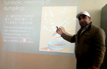 首先,孔院本土教师阿斯兰用乌尔都语向453位在线观众介绍了饺子的起源、饺子的制作和品鉴以及饺子的象征意义。