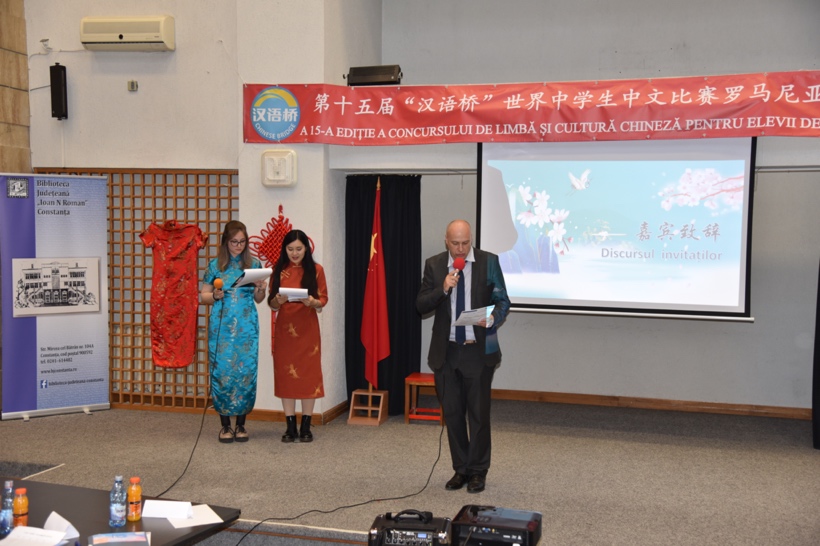 Irina共同主持,共有来自罗马尼亚各地的17名选手参赛。比赛分为主题演讲、知识问答以及才艺展示三个环节,由来自使馆、孔院及课堂的9名评委对其表现进行评分。