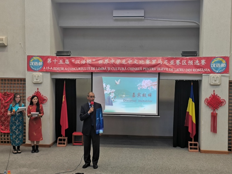 Girtu先生以及康斯坦察奥维第乌斯大学孔子课堂罗方负责人Angelo Mitchievici 先生出席大赛并发表精彩致辞。