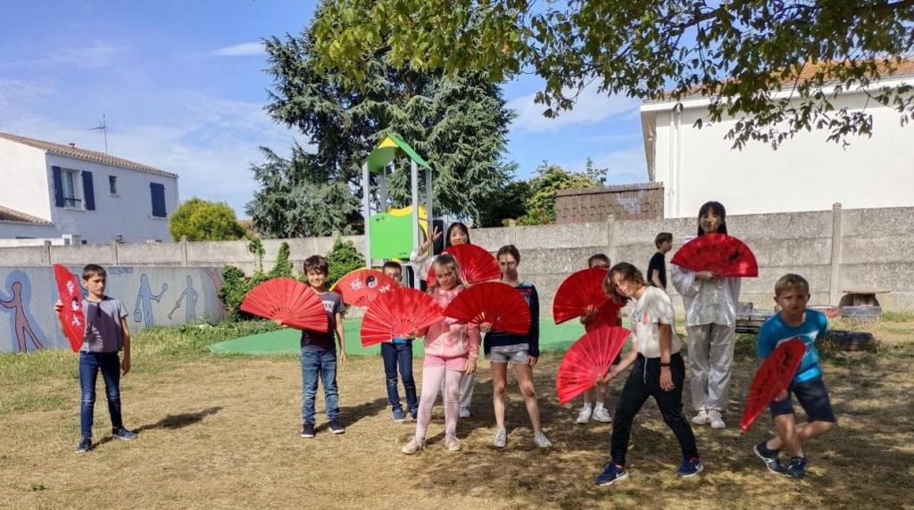 elementaire学校的小学生就等候在大门口迎接志愿者的到来。当志愿者亮出手中的太极扇时,孩子们蜂拥而上,兴致勃勃地跟着老师比划起来,他们渴望的眼神、认真的神态,还有稚气的动作,也深深地感染了志愿者。舞动太极扇是孩子们第一次尝试,这种极富中国元素且趣味性极高的户外活动很受法国儿童的喜爱,9岁男生