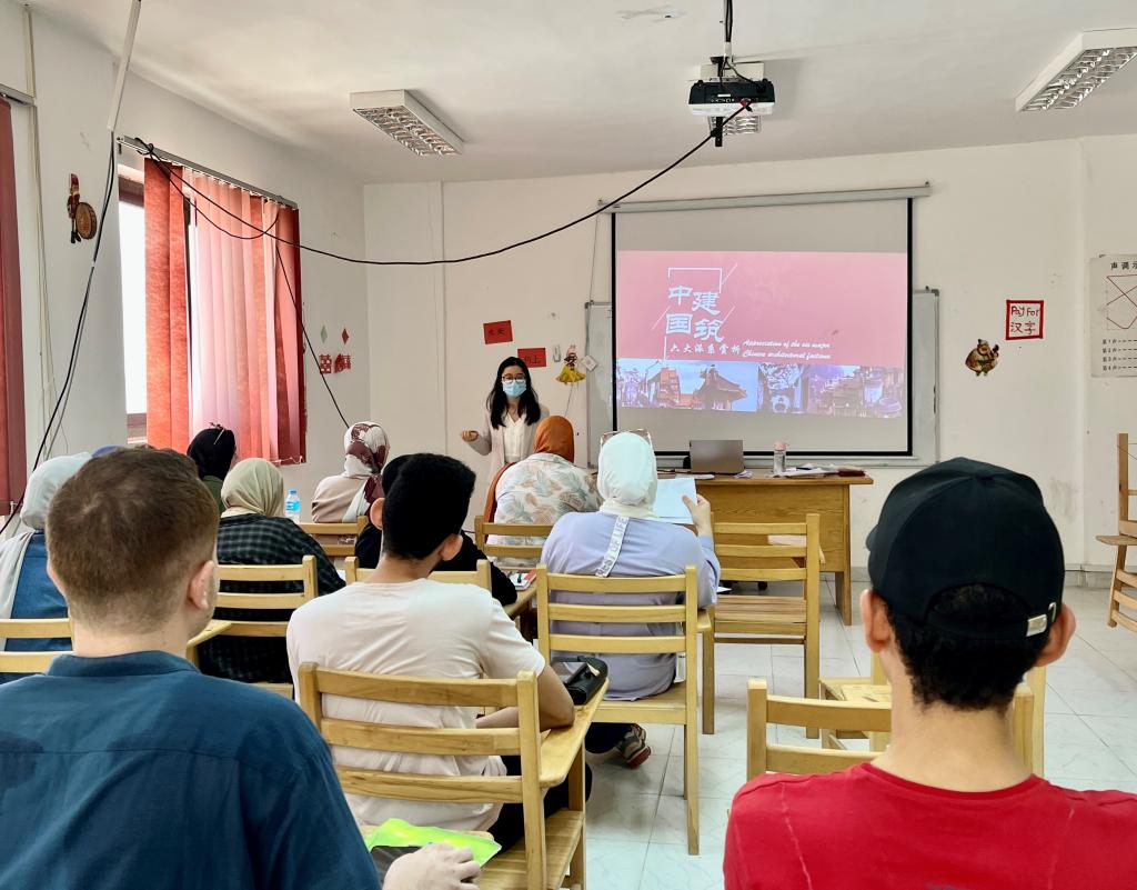 此次培训营历时两周,共8次课,包括4次语言研修课、3次文化体验课以及1次专题讲座。语言研修课上,苏大孔院的老师们以旅游为主题带领大家云游中埃,帮助学生在提高汉语能力、学习旅游知识的同时领略中埃的壮美风光,认识日新月异的当代中国。