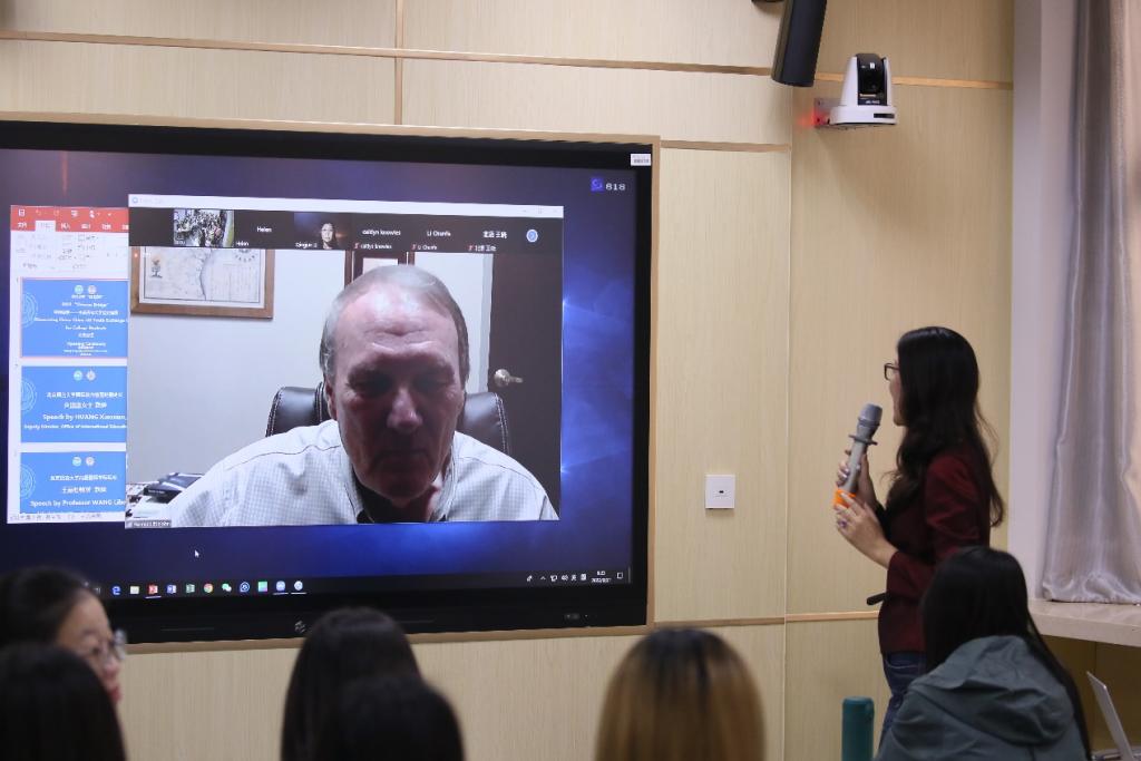 Think!)》;北京语言大学高级翻译学院院长王丽虹教授主持仪式并担任首讲中方协调人;中美学生近200人线上线下同步学习交流。