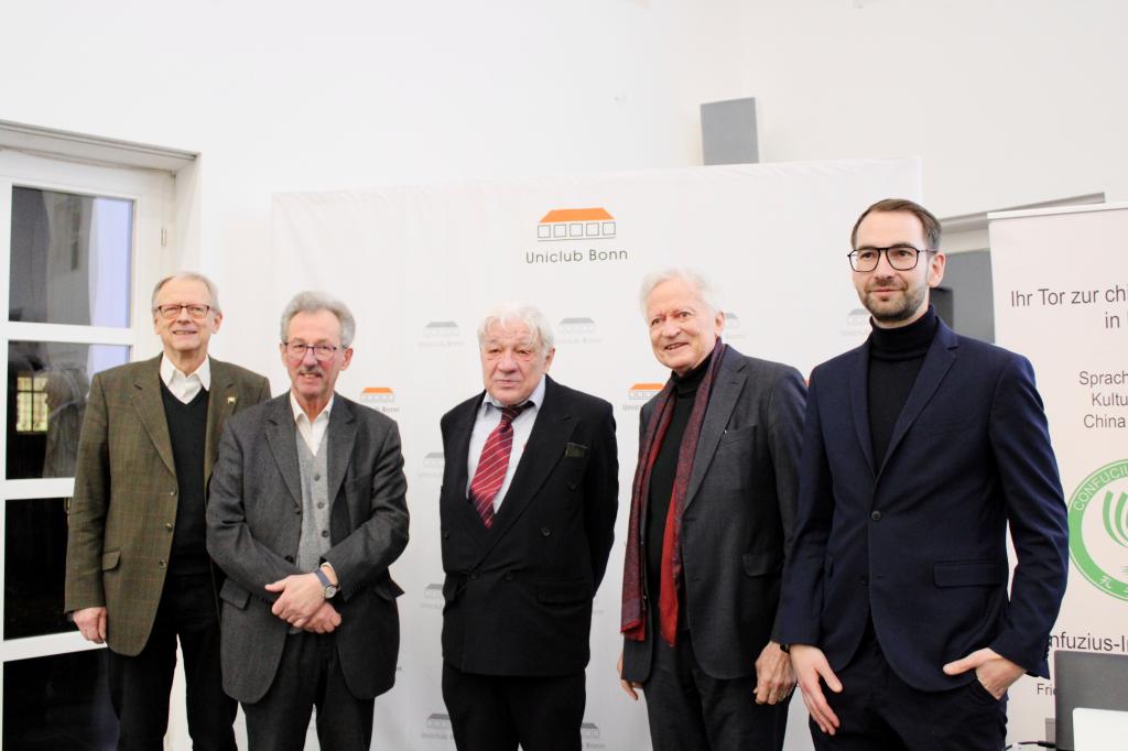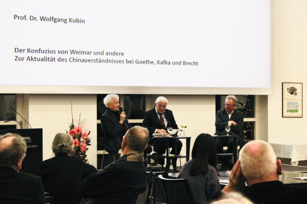 12月13日波恩孔子学院携手波恩大学俱乐部成功举办了名为“来自魏玛的孔子”主题讨论会,来自波恩贝多芬乐团之友协会的弗雷德•奥斯滕博士(Dr. Manfred Osten),波恩大学的尤尔根• 弗尔摩教授(Prof. Dr. Jürgen. Fohrmann)和顾彬(Prof. Dr. Wolfgang Kubin)应邀参加此次活动。波恩大学俱乐部的负责人根特·舒尔茨教授(Prof. Dr. Günther Schulz)担任本次活动的主持人。