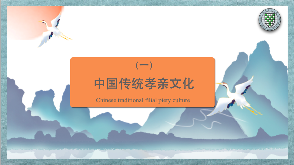 第一部分是中国传统孝亲文化。该课程主要从“孝”的起源和“孝为仁之本”两个方面介绍了中国老年服务伦理与中国传统孝亲文化的渊源。