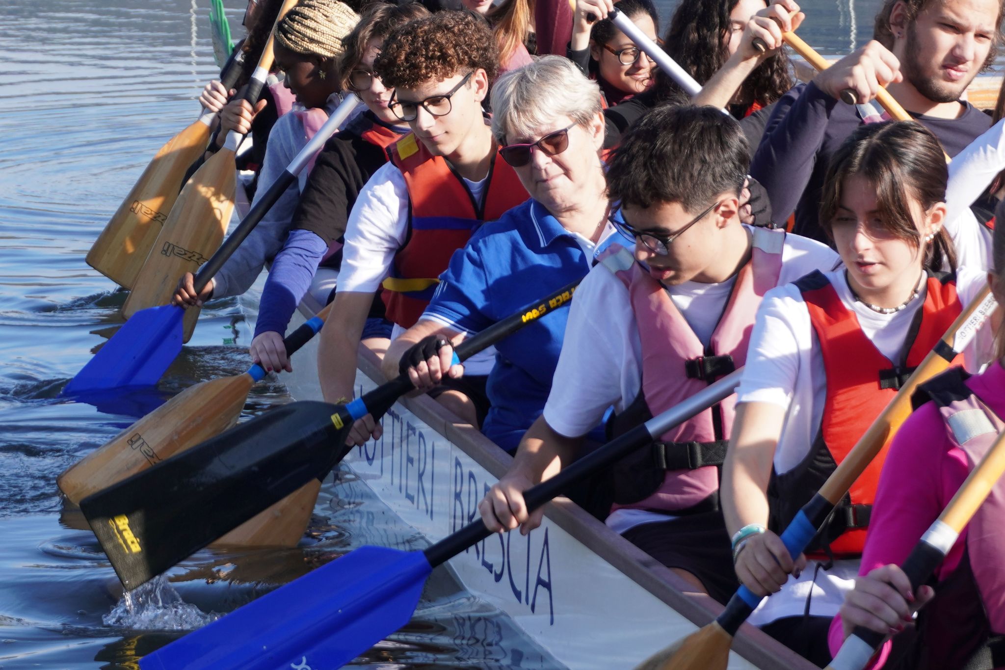 当地时间2024年10月12日,为庆祝孔子学院项目20周年和2024年孔子学院日,意大利米兰天主教圣心大学孔子学院及两所下属孔子课堂在布雷西亚(Brescia)湖区开展了赛龙舟体验活动。该活动由布雷西亚划艇协会(Canottieri Bresica)负责实施,圣心孔院布雷西亚分部志愿者教师、米兰马切林内(Marcelline)高中孔子课堂和布雷西亚伦纳迪(Lunardi)高中孔子课堂师生共计25人参与了活动。