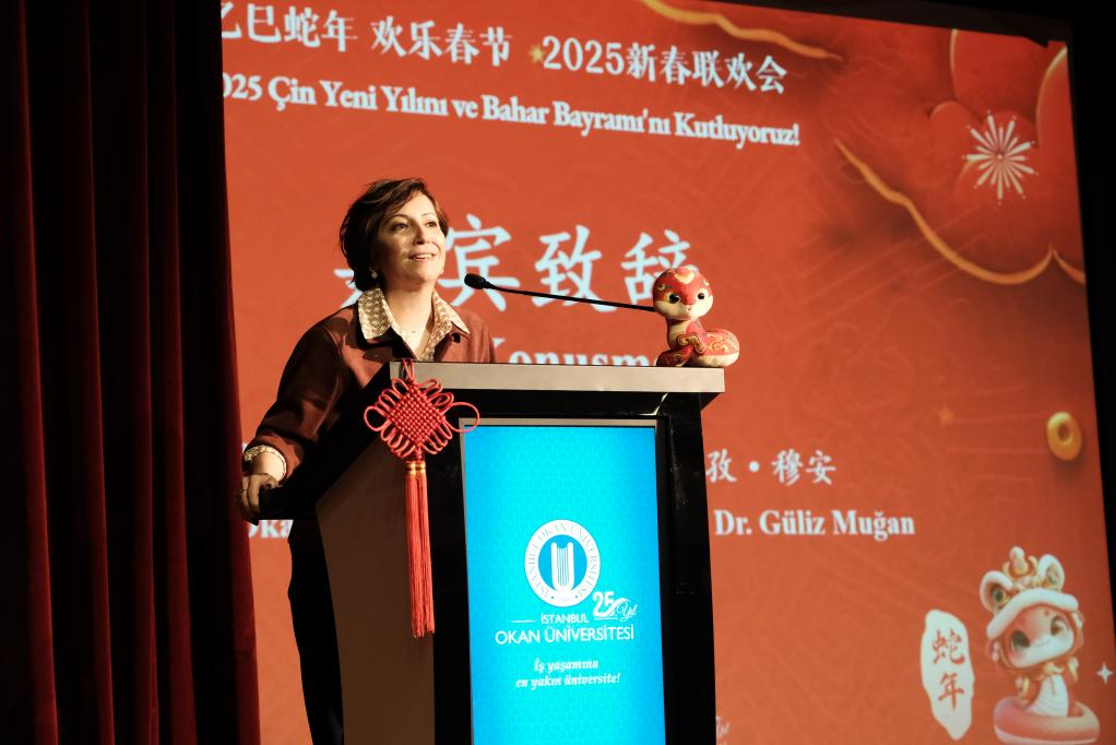 北语新闻网3月4日电(通讯员 黎原菁 仝亦晴 摄影 仝亦晴)2025年2月27日,在中国农历乙巳蛇年正月的最后一天,伊斯坦布尔奥坎大学孔子学院举办了2025“乙巳蛇年·欢乐春节”新春联欢会,奥坎大学中土翻译系以及中文选修课的近百名学生呈现了一场精彩纷呈的演出。奥坎大学校长古丽孜·穆安(Prof. Dr. Güliz Muğan)教授、副校长格克切·通齐(Prof. Dr. Gökçe Tunç)教授与奥坎大学师生、汉语学习者及学生亲友团等近两百名观众参加了此次活动,共同感受中国春节的喜庆和欢乐,携手迎接充满希望与祝福的2025年。