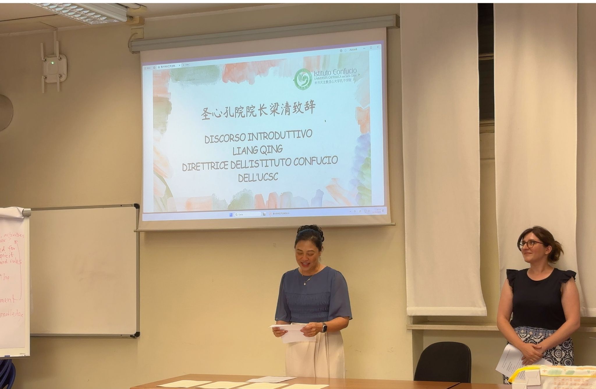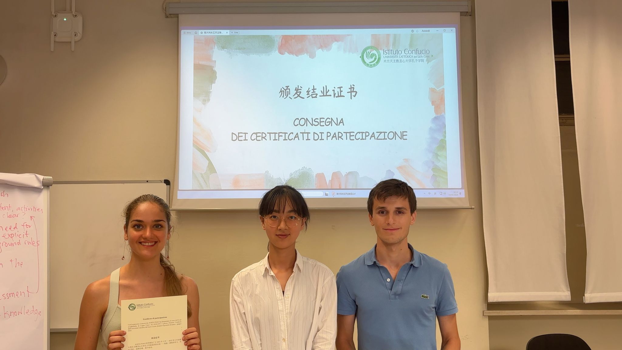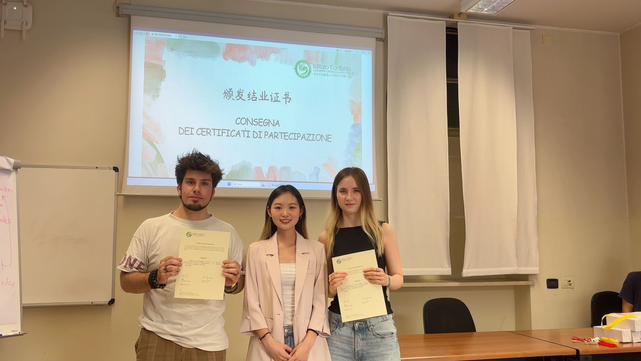 北语新闻网6月24日电(通讯员 匡佳菲 摄影 匡佳菲)当地时间6月19日,意大利圣心大学孔子学院在米兰卡尔杜奇(Carducci)校区教室举行了2025至2026年春季学期中文课程结业典礼,本学期,孔院在圣心大学卡尔杜奇校区及皮尔琴察(Piacenza)校区开设了入门、初级、中级和高级的班课及一对一中文课程,吸引了众多热爱汉语的学员报名。