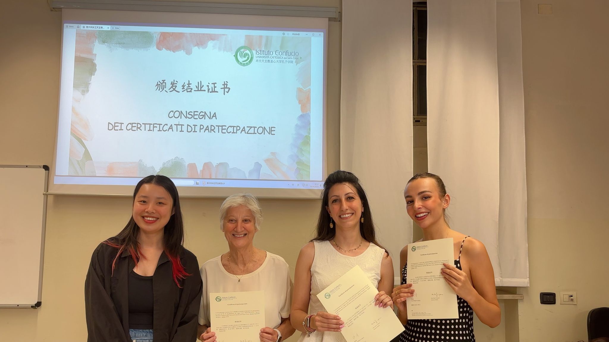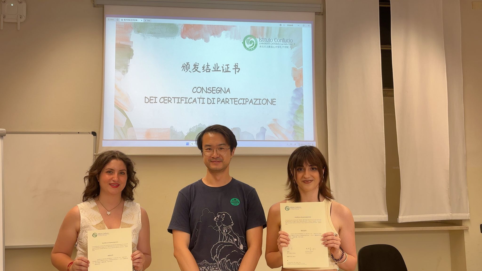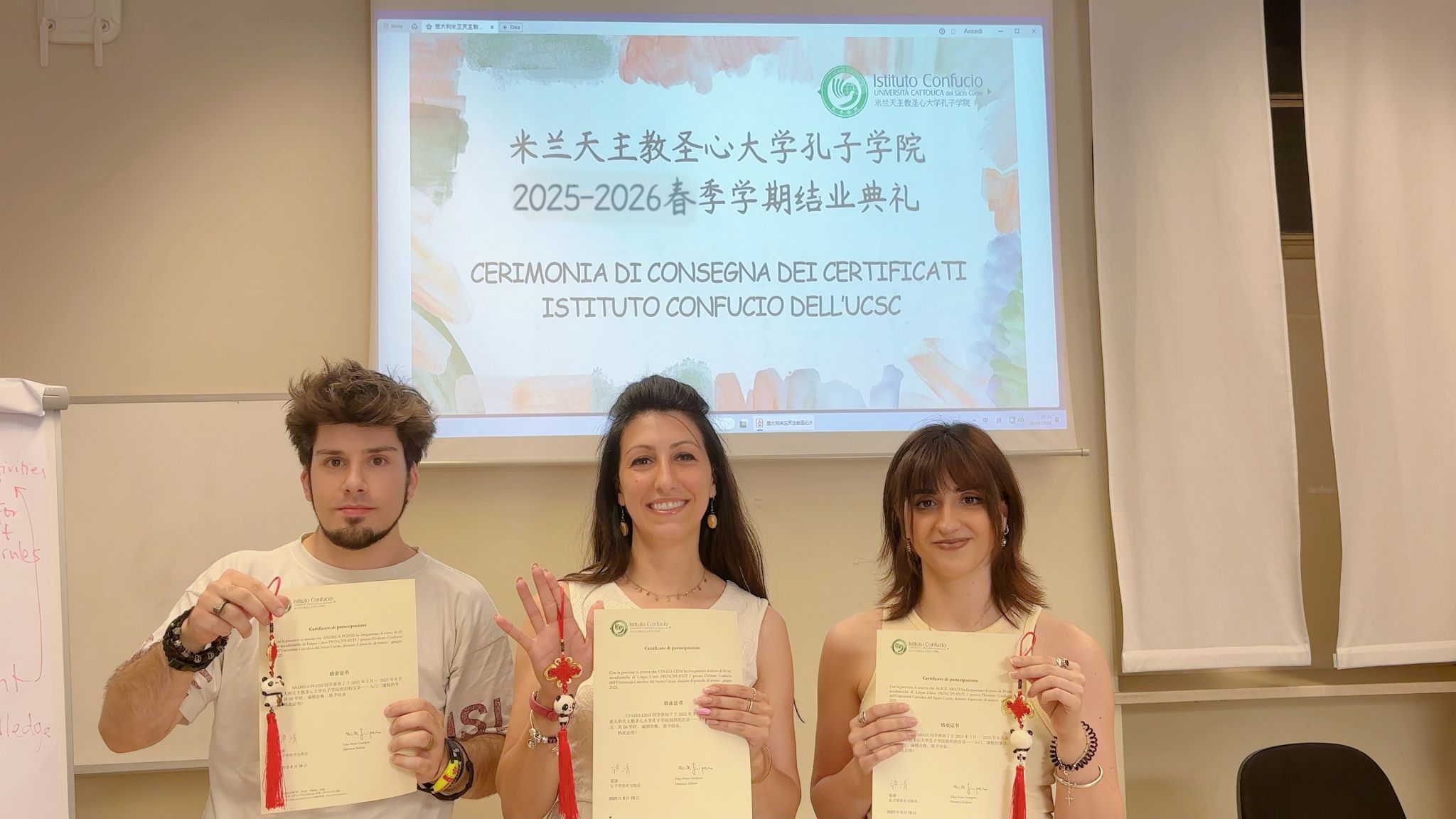北语新闻网6月24日电(通讯员 匡佳菲 摄影 匡佳菲)当地时间6月19日,意大利圣心大学孔子学院在米兰卡尔杜奇(Carducci)校区教室举行了2025至2026年春季学期中文课程结业典礼,本学期,孔院在圣心大学卡尔杜奇校区及皮尔琴察(Piacenza)校区开设了入门、初级、中级和高级的班课及一对一中文课程,吸引了众多热爱汉语的学员报名。