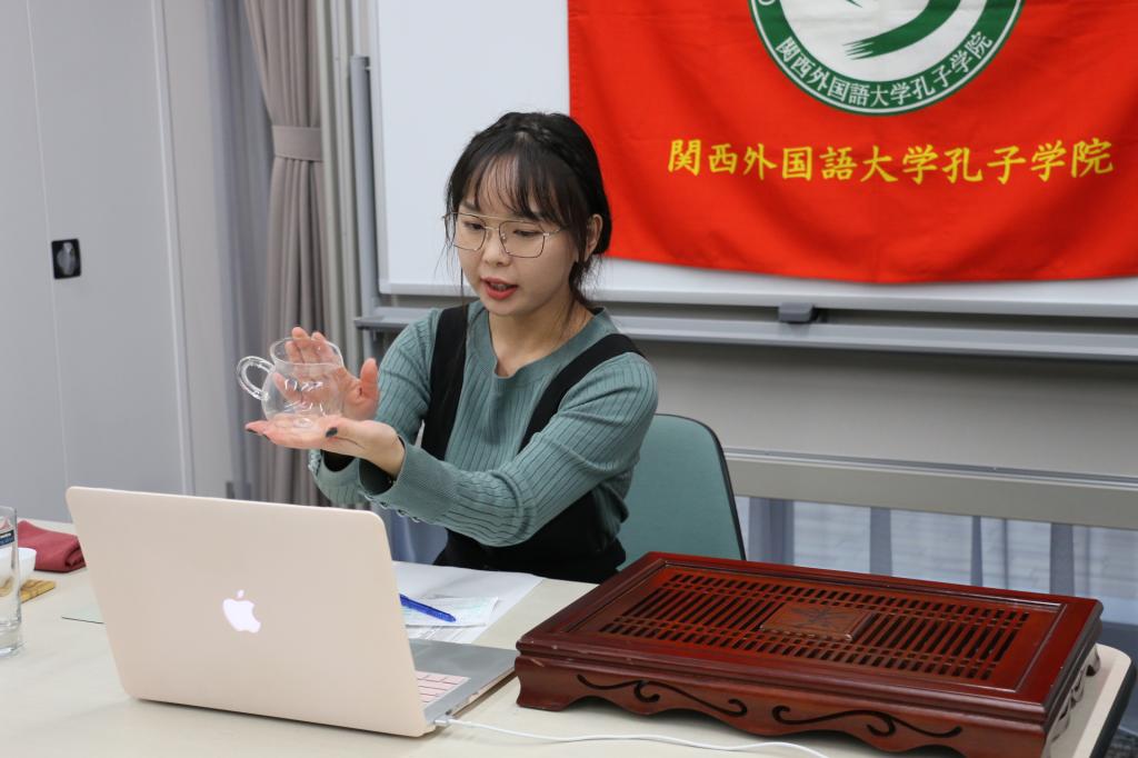 11月7日,关西外大孔子学院举办了以“茶碗里的味道——中国人的饮茶方式”为主题的第二场线上茶文化讲座,吸引了孔子学院市民讲座学员、关西外大本科生以及外大职员20余人前来参加。