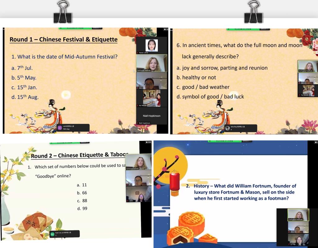 本次线上中秋知识竞赛,是在去年孔院成功举办线上端午节中国知识竞赛的基础上,再次采用了英国人民喜闻乐见的知识竞赛形式,帮助英国人民了解中国的中秋节文化等知识。此次竞赛活动,不仅让英国民众更加了解中秋节的传统,更是一次情感互通、文化互鉴的友好交流。