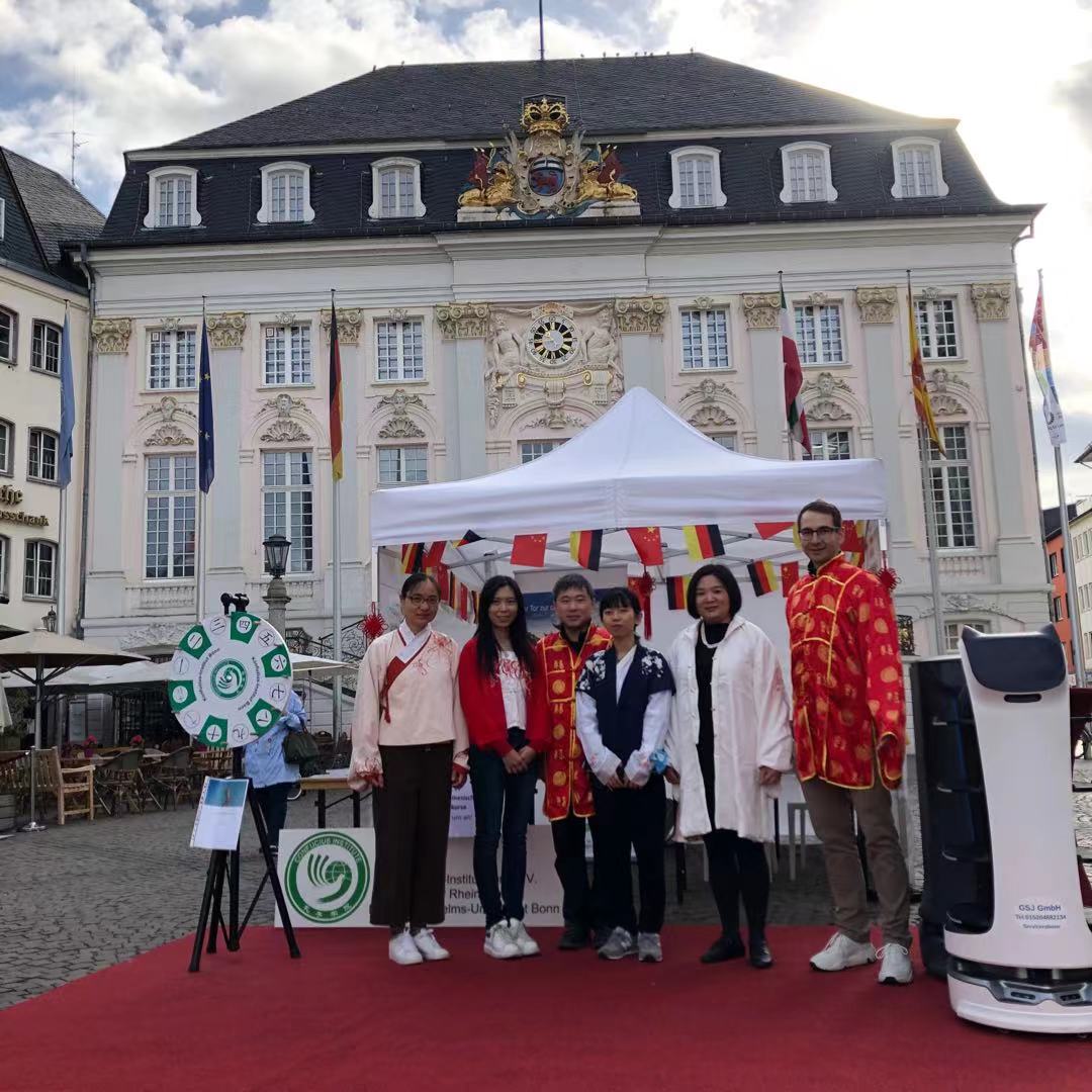 为纪念孔子诞辰,当地时间2021年10月2日波恩孔子学院在波恩老市政厅前圆满举办了“2021波恩孔子学院日”活动,活动现场热闹非凡,人头攒动,更有波恩嘉年华协会与GSJ公司共同提供的机器人在一旁载歌载舞,吸引往来市民驻足观看。