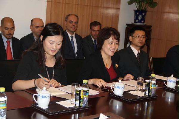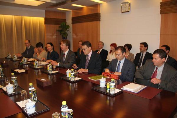 在随后的互动访谈中,欧盟团成员也纷纷表达了欧洲欲与中国建设良性长久合作机制的愿望,并就各自工作领域和研究兴趣向陈波副司长提问。问题主要围绕中国对欧盟的贸易战略、中国对欧外交政策、中欧未来重点合作领域等展开,在近来热议的自由贸易区协定谈判问题上也提出自己的建议。对于欧盟官员的提问,陈波副司长均一一给予坦诚的答复。首场中欧高层官员访谈活动在热烈友好的氛围中结束。